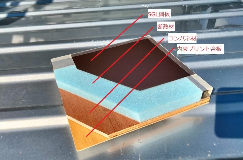 トラベルハウスの外壁は、既存のキャンピングカーによく使用されているFRPではなく、割れや経年劣化に強いガルバリウム鋼板の3倍の耐食性をもつ、次世代特殊鋼板のエスジーエル鋼板を使用。