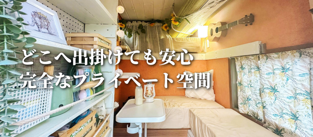 普通車では十分に寝れず、かといって従来のキャンピングカーではどれも大きすぎて私にはオーバースペックでした。そんなときに出会ったのが「旅する家」です。コンパクトだけどシェル内は広く、収納力も抜群。ベッドでゆっくり寝れるし、遮音性が高く外の音もきになりません。想像以上に快適です。
