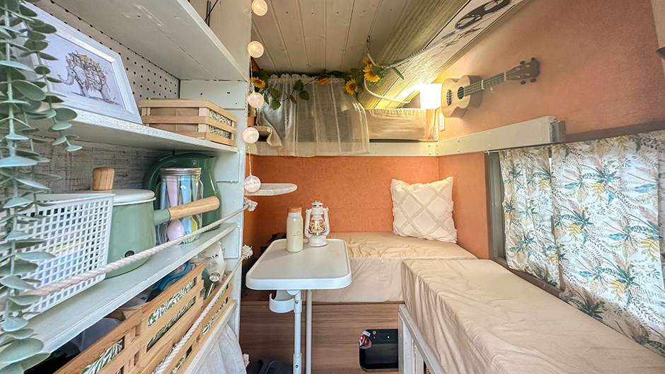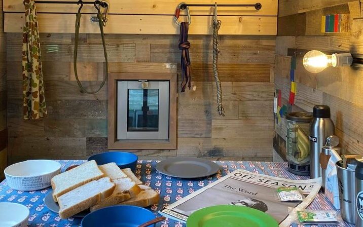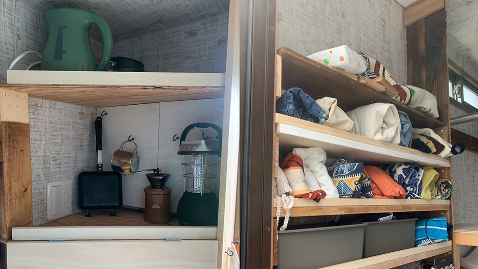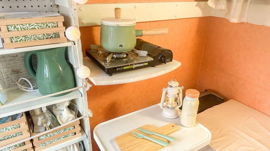 棚やテーブルの他、自分でカスタマイズして居心地の良い空間を作れるのもトラベルハウスの醍醐味。