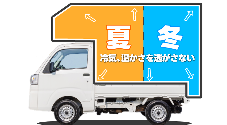 住宅と同じ断熱材を使用している為、夏は暑くなりにくく、冬は熱が奪われにくいうえ、遮音性が高く、アウトドアの仕様でも快適に過ごせます。