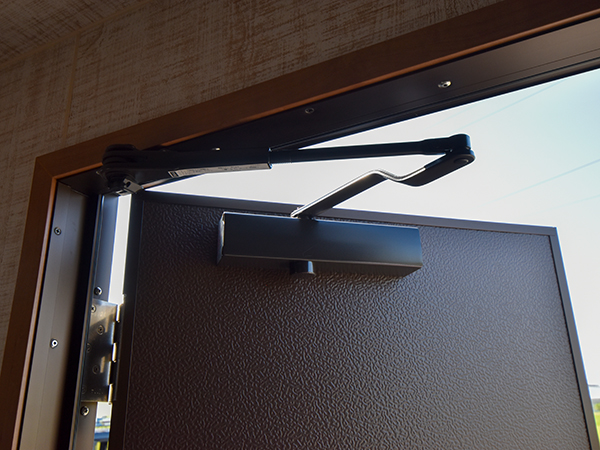 安全面に配慮して取り付けています。急に突風が吹いてもゆっくり閉まるので安心です。