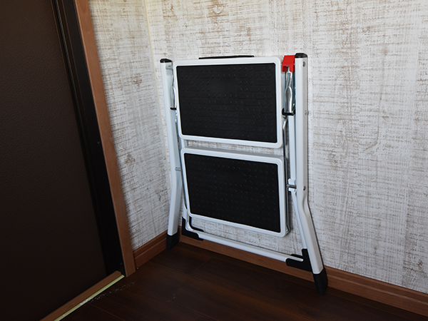 ハウスを出入りするためのステップです。移動時はハウスの中に収納します。踏み込み幅が広いため安全です。